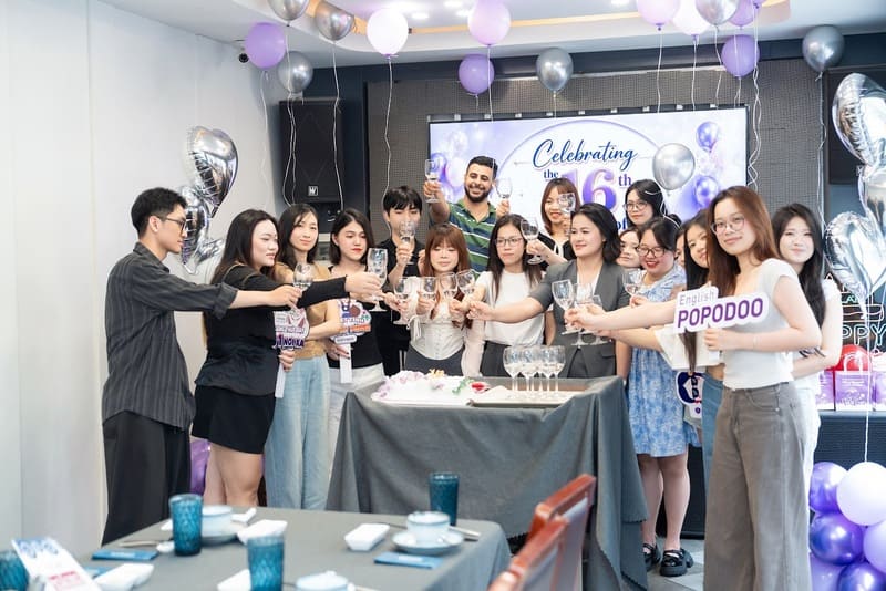 Kỷ niệm 16 năm thành lập và phát triển, Anh ngữ quốc tế PoPoDoo Hải Phòng ghi dấu một cột mốc đáng nhớ trên hành trình bền bỉ bằng buổi tiệc ấm cúng, tràn đầy cảm xúc. Đây là dịp để nhìn lại những dấu ấn đã qua, đồng thời kết nối những con người đã cùng nhau tạo nên PoPoDoo của hôm nay, và cùng hướng đến chặng đường phía trước.